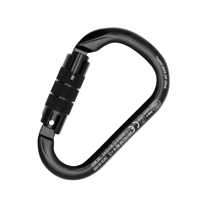 | Alliage d’aluminium | Keylock | Noir | 23 | 8 | 85 | 110 | 71.5 | 12 | / | 23 | Twist lock | EN 362/B, UIAA, EN 12275/H | H.M.S |