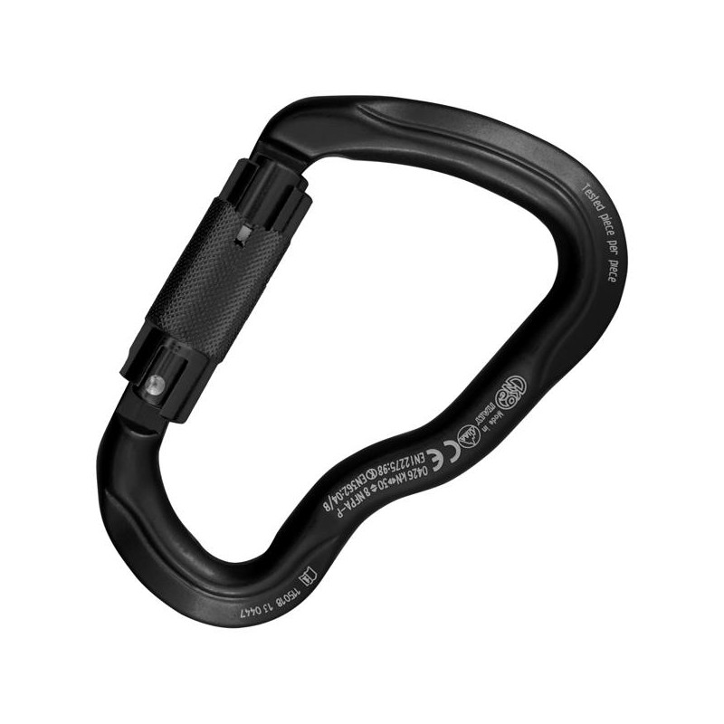 Mousqueton aluminium avec virole Auto Block à 3 mouvements et système Keylock. Sa forme particulière permet une grande ouverture (voire 26 mm !) et une poignée excellente. La virole automatique le rend indiqué pour des utilisations professionnelles. Normalement utilisé sur cordelettes de progression et maintien. Caractéristiques clés: - Ouverture et capacité améliorées grâce à la formeDestinataire :