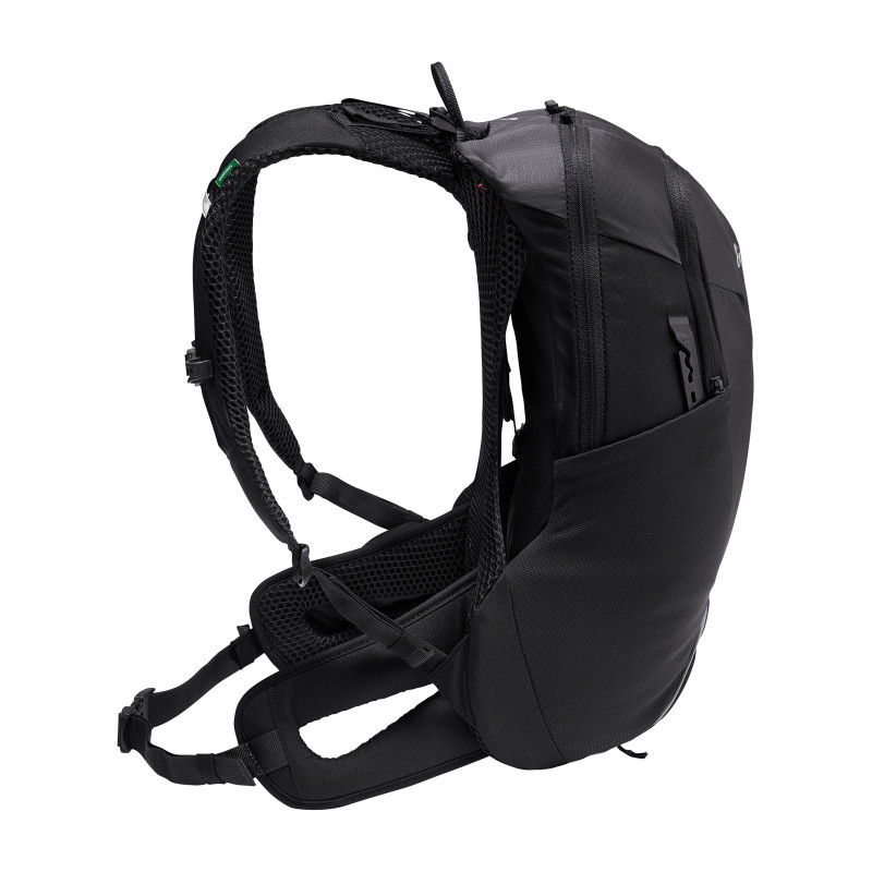 Tremalzo 10 est incontournable quand le besoin d'un petit sac à dos compact pour une virée rapide de fin de soirée se fait sentir. Il convient aussi aux circuits ambitieux estivaux all mountain-cross country, dans le cadre desquels le bagage doit être réduit au strict minimum. Il se démarque par un compartimentage ingénieux avec un compartiment organiseur sur l'avant, des éléments réfléchissants et de la place pour une pompe, l'outillage et une poche d'hydratation. Des compartiments latéraux en mesh peuvent accueillir en outre des gants, gels ou barres énergétiques. Le système de portage Aeroflex 3D offre un confort au porter excellent ainsi qu'une aération arrière optimale. Le sac à dos est fabriqué en respect des critères environnementaux stricts de la norme bluesign®. Le label Green Shape de VAUDE garantit un produit écologique, fonctionnel et fabriqué dans des matériaux durables.