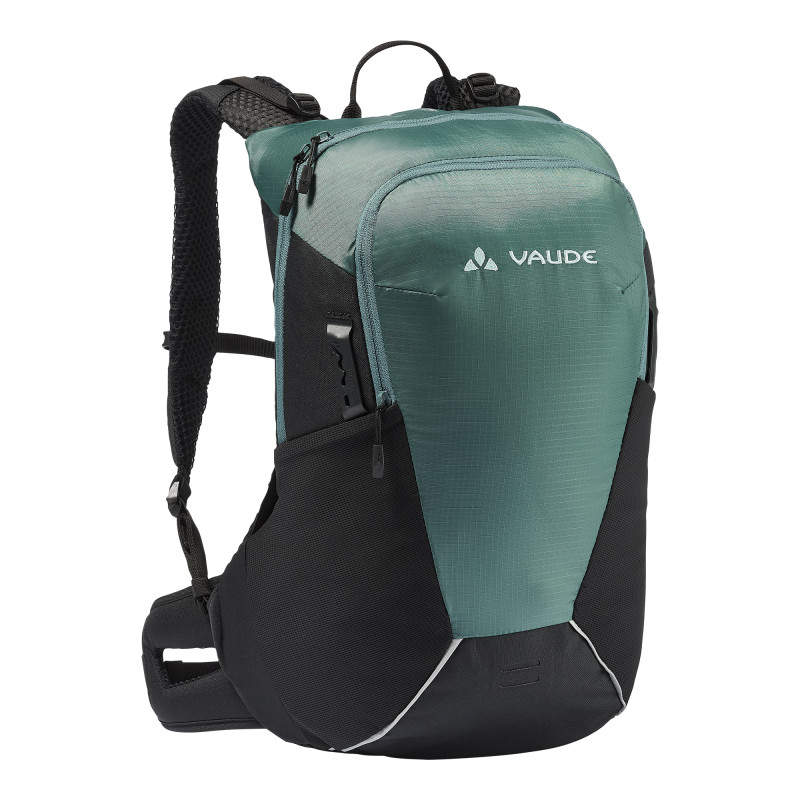 Tremalzo 10 est incontournable quand le besoin d'un petit sac à dos compact pour une virée rapide de fin de soirée se fait sentir. Il convient aussi aux circuits ambitieux estivaux all mountain-cross country, dans le cadre desquels le bagage doit être réduit au strict minimum. Il se démarque par un compartimentage ingénieux avec un compartiment organiseur sur l'avant, des éléments réfléchissants et de la place pour une pompe, l'outillage et une poche d'hydratation. Des compartiments latéraux en mesh peuvent accueillir en outre des gants, gels ou barres énergétiques. Le système de portage Aeroflex 3D offre un confort au porter excellent ainsi qu'une aération arrière optimale. Le sac à dos est fabriqué en respect des critères environnementaux stricts de la norme bluesign®. Le label Green Shape de VAUDE garantit un produit écologique, fonctionnel et fabriqué dans des matériaux durables.