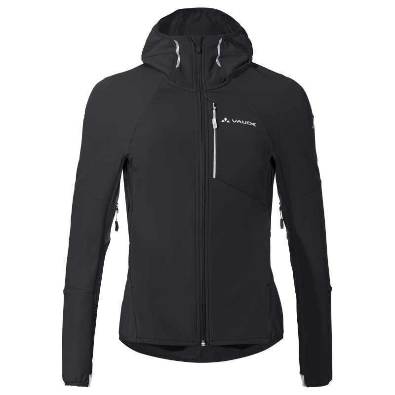 Elle est fan d'ascension! La veste à capuche softshell à la coupe près du corps a été spécialement conçue pour les randonnées à ski sportives. Elle séduit par ses trois zones de matières différentes qui favorisent une régulation thermique optimale dans le cadre d'activités de vitesse en hiver: la matière softshell étanche au vent sur l'avant, la matière élastique et coupe-vent Windproof 80 aux endroits exposés ainsi qu'une matière des plus respirantes sous les bras et comme empiècement au dos. En outre, cette veste hybride comporte des zips d'aération sous les bras. Une sélection de poches fonctionnelle, une capuche douce au toucher (ajustée) et des passe-pouces pratiques viennent compléter l'arsenal de cette veste softshell sportive. Cette veste femme est apprêtée avec la finition Eco Finish, déperlante, écologique et sans fluorocarbures (PFC). En tant que membre élevé au rang de Leader de l'organisme indépendant Fair Wear, VAUDE s'engage en faveur de conditions de travail et de salaires équitables.