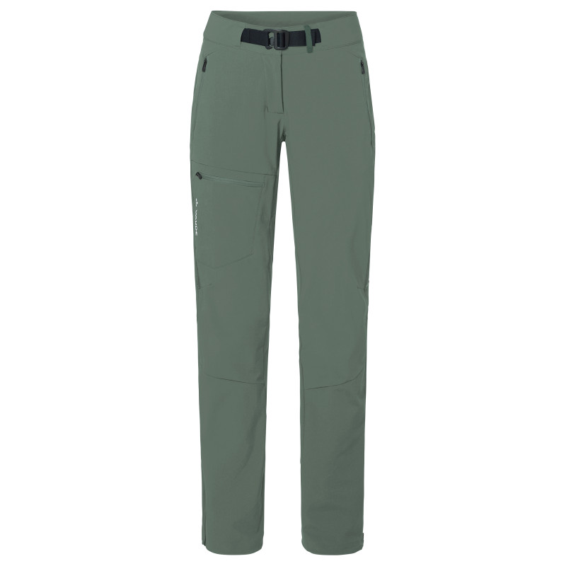 Un pantalon léger et résistant pour les randonnées et les courses en montagne exigeantes tout au long de l'année : Le pantalon softshell Badile pour femmes est déjà un classique éprouvé de la collection VAUDE. Le matériau respirant et coupe-vent offre une protection fiable contre les intempéries et une grande durabilité. La structure sur la face intérieure améliore la régulation de l'humidité et assure un confort agréable même lors des montées qui font transpirer. Des détails pratiques comme les zips d'aération latéraux avec inserts en mesh permettent une régulation individuelle de la température. La taille avec ceinture intégrée assure un bon maintien, tandis que deux poches latérales et une poche de jambe zippée offrent suffisamment d'espace de rangement pour les accessoires essentiels. Le bas des jambes est équipé d'une fermeture éclair et d'un réglage par cordon élastique, et il est doublé d'un coin en tissu, ce qui permet d'adapter le pantalon de manière optimale aux différentes chaussures de montagne et de toujours garantir une fermeture nette. Avec sa matière robuste mais légère et sa coupe sportive mais confortable, c'est le choix idéal pour les longues randonnées et les aventures alpines. Le tissu extérieur du pantalon softshell Badile est traité avec Eco Finish pour résister à l'eau et aux salissures. VAUDE renonce aux fluorocarbones, des produits chimiques appelés PFAS ou PFC, qui sont soupçonnés d'être nocifs pour la santé. Le label Green Shape de VAUDE garantit un produit écologique, fonctionnel et fabriqué dans des matériaux durables.