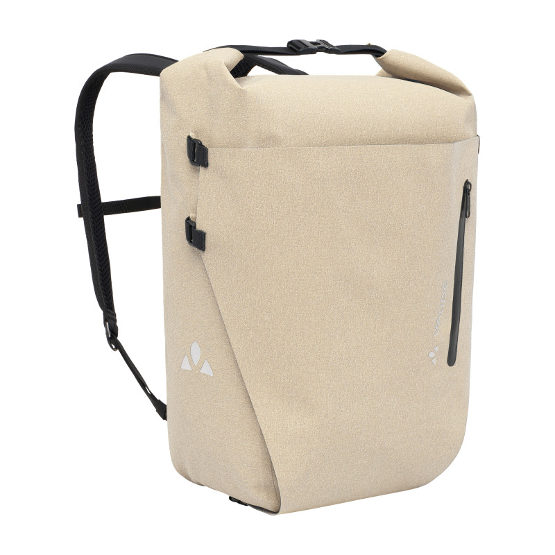 Fabriqué en Allemagne, ce sac à dos et sacoche de vélo 2en1 se distingue par son design imperméable, rectiligne et intemporel, parfaitement adapté aux trajets domicile-travail ou aux longues excursions. Avec un volume de 27 litres, il offre beaucoup de place et est équipé d'une partie dorsale rembourrée, de bretelles ergonomiques et d'une sangle de poitrine. De plus, elle se transforme rapidement et facilement en sacoche de vélo pour porte-bagages : Les bretelles peuvent être rangées dans un filet au dos du sac à dos et sécurisées par un couvercle frontal. Celui-ci est équipé d'un compartiment avec une fermeture éclair étanche et peut être entièrement retiré pour le nettoyage. Grâce au système QMR 2.0 éprouvé, le sac à dos 2en1 peut être fixé en toute sécurité sur des porte-bagages avec des tubes ronds de 8 à 16 mm de diamètre et peut être rapidement détaché en tirant sur la bande de liaison entre les deux crochets. Les crochets QMR peuvent être sécurisés avec un petit cadenas (par ex. serrure TSA, non fourni). Le sac offre un vaste espace de rangement avec un intérieur intelligemment conçu, y compris un compartiment rembourré pour ordinateur portable pouvant accueillir des appareils jusqu'à 13,3 pouces, des poches supplémentaires pour smartphone, stylos et autres. En fonction de la charge, la sacoche de vélo 2en1 peut être comprimée latéralement en trois étapes. Le matériau résistant à l'aspect textile est soudé de manière étanche dans la manufacture VAUDE et est entièrement exempt de PVC. Avec logos réfléchissants.