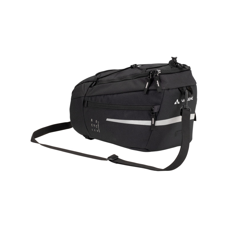La sacoche de porte-bagages de 7 litres de volume se fixe et se retire aisément à l'aide de fermetures velcro. Cerise sur le gâteau: la sacoche permet aussi de monter une plaque adaptatrice pour tous les systèmes courants. La fixation élastique sur le capot permet de ranger en plus une veste ou des gants. La sacoche est complétée par une bandoulière amovible, des éléments réfléchissants et une housse de pluie.