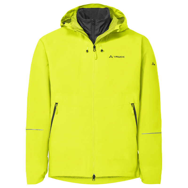 De la douceur au froid glacial, du ciel bleu à la neige ou à la pluie. L'hiver est souvent synonyme de météo changeante ? bienheureux celui qui peut y réagir avec des vêtements polyvalents. La veste de vélo Yaras II 3en1 pour hommes est imperméable au vent et à l'eau et offre une chaleur fiable en combinaison avec la veste intérieure isolante. Sa construction hybride est idéalement adaptée aux exigences du cyclisme : Tout l'avant est rembourré de PrimaLoft® de haute qualité jusqu'au-dessus des épaules pour se protéger du vent. Les fibres Lyocell sur les bras, les côtés et le dos favorisent la régulation de la chaleur, l'absorption de l'humidité et empêchent la formation d'odeurs désagréables. La veste extérieure marque des points avec ses manches préformées, son dos de coupe allongée et sa capuche redessinée qui s'adapte parfaitement au casque de vélo. Si nécessaire, des fermetures à glissière de ventilation permettent de se rafraîchir rapidement. En plus de la membrane imperméable, le tissu extérieur de la veste de vélo Yaras II 3en1 pour hommes est traité pour résister à l'eau et aux salissures. VAUDE renonce ici aux fluorocarbones, des produits chimiques appelés PFAS ou PFC, qui sont soupçonnés d'être nocifs pour la santé. Les poches avant sont équipées de fermetures éclair déperlantes ? ainsi, le smartphone, la carte et les autres objets de valeur restent toujours protégés et au sec.